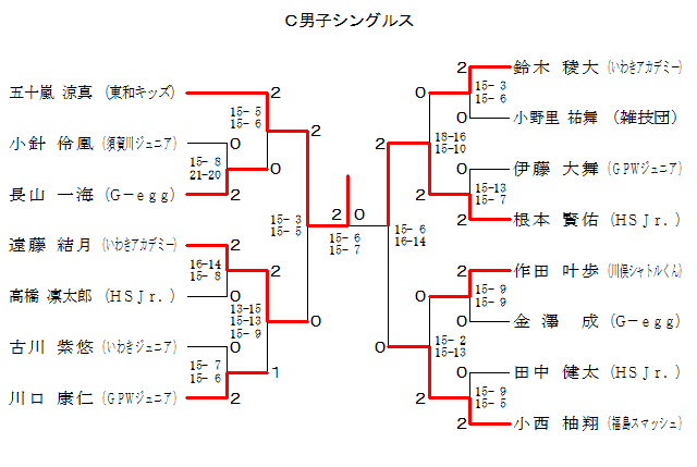 | CMS-2 | いわきアカデミー | 遠藤 結月 | 2 | 16-14 15- 8 | 0 | 高橋凛太郎 | HSJr. | |