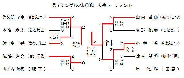 | BSB-1 | Šì‘½•û‘æ“ñ | ²“¡ @•É | ‚Q | 15- 7 15-11 | ‚O | –{–¼ Œc‘¾ | Žá¼‘æŒÜ | |