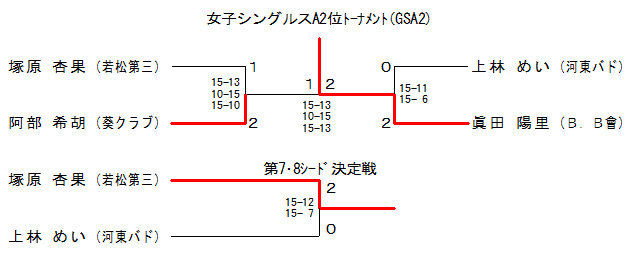 | GSA2-2 | ‚aD‚a˜ð | áÁ“c —z—¢ | ‚Q | 15-11 15- 6 | ‚O | ã—Ñ ‚ß‚¢ | ‰Í“Œƒoƒh | |