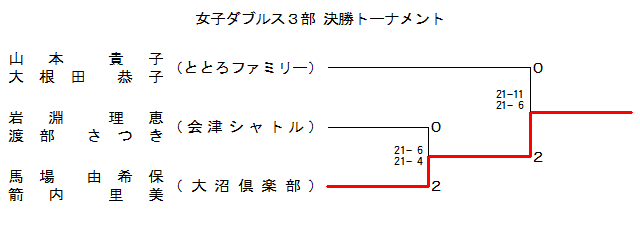 | R{ Mq εͺc ±q (ΖΖλΜ§ΠΨ°) | 15- 9 15-12 | 15- 9 15- 3 | @ | 15-11 15-11 | P |