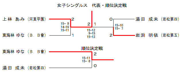 | GSj-1 | 河東学園 | 上林 あみ | 2 | 15- 9 14-16 15-11 | 1 | 東海林ゆな | B.B會 | |